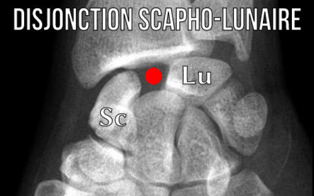 – SLAC Wrist : Le « Scapho Lunate Advanced Collapse » aboutit plus ou moins aux mêmes dégats que le SNAC évoqué ci dessus… Ici, le mécanisme est déférent, il s’agit de la déchirure d’un ligament très important qui réunit le scaphoide au semi-lunaire : le ligament scapho-lunaire. Cette déchirure survient sur un traumatisme de type chute sur le poignet. Là aussi, il faut un œil averti pour détecter cette entorse grave du poignet qui va inexorablement provoquer une usure prématurée de ses articulations. En effet, la rupture de ce ligament scapho-lunaire est à l’origine d’une dys-coordination des os du poignet les uns avec les autres, qui provoque une usure accélérée de leurs surface articulaires.